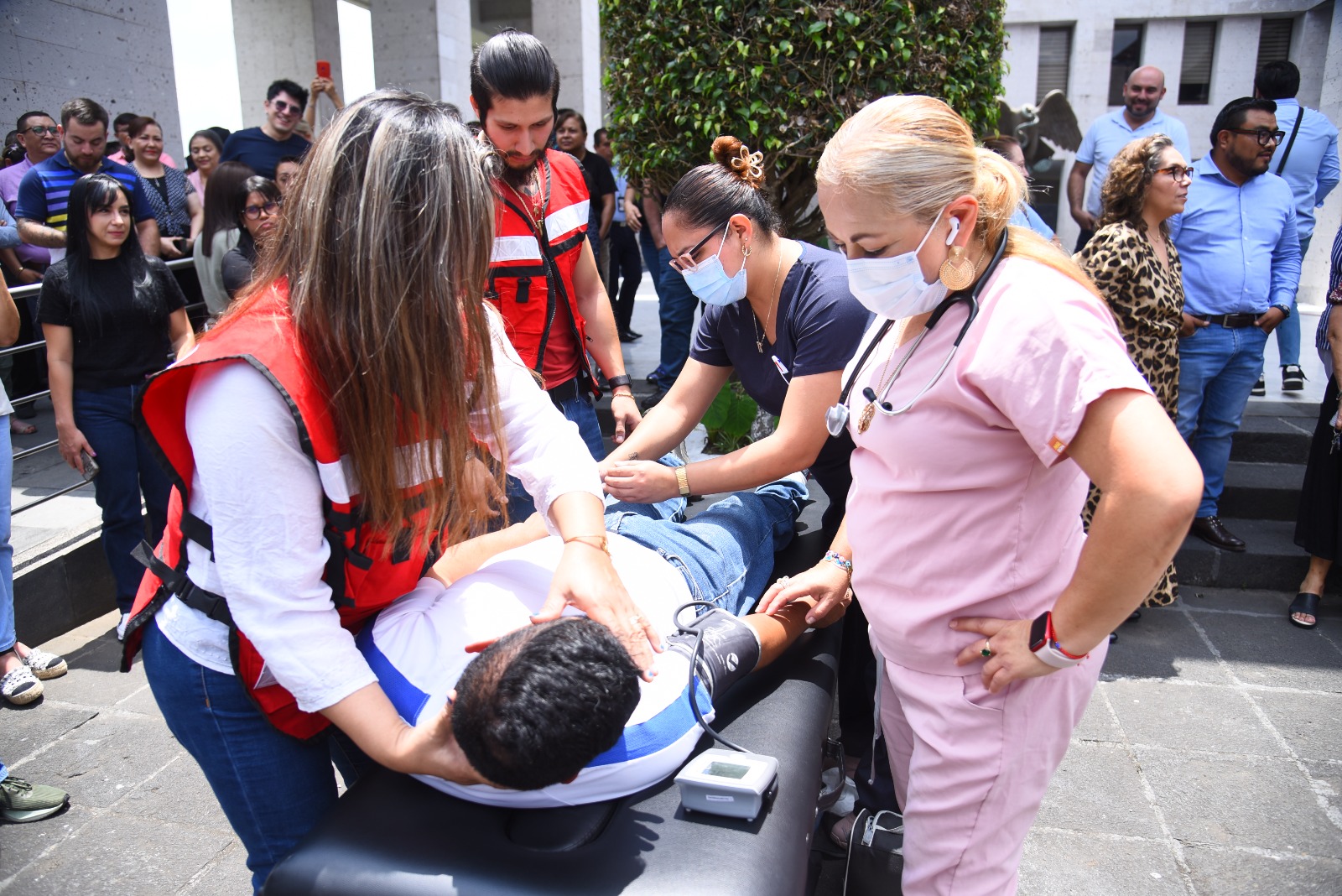 | Participan autoridades, personal y visitantes en el Simulacro Nacional de Sismo 2025. |