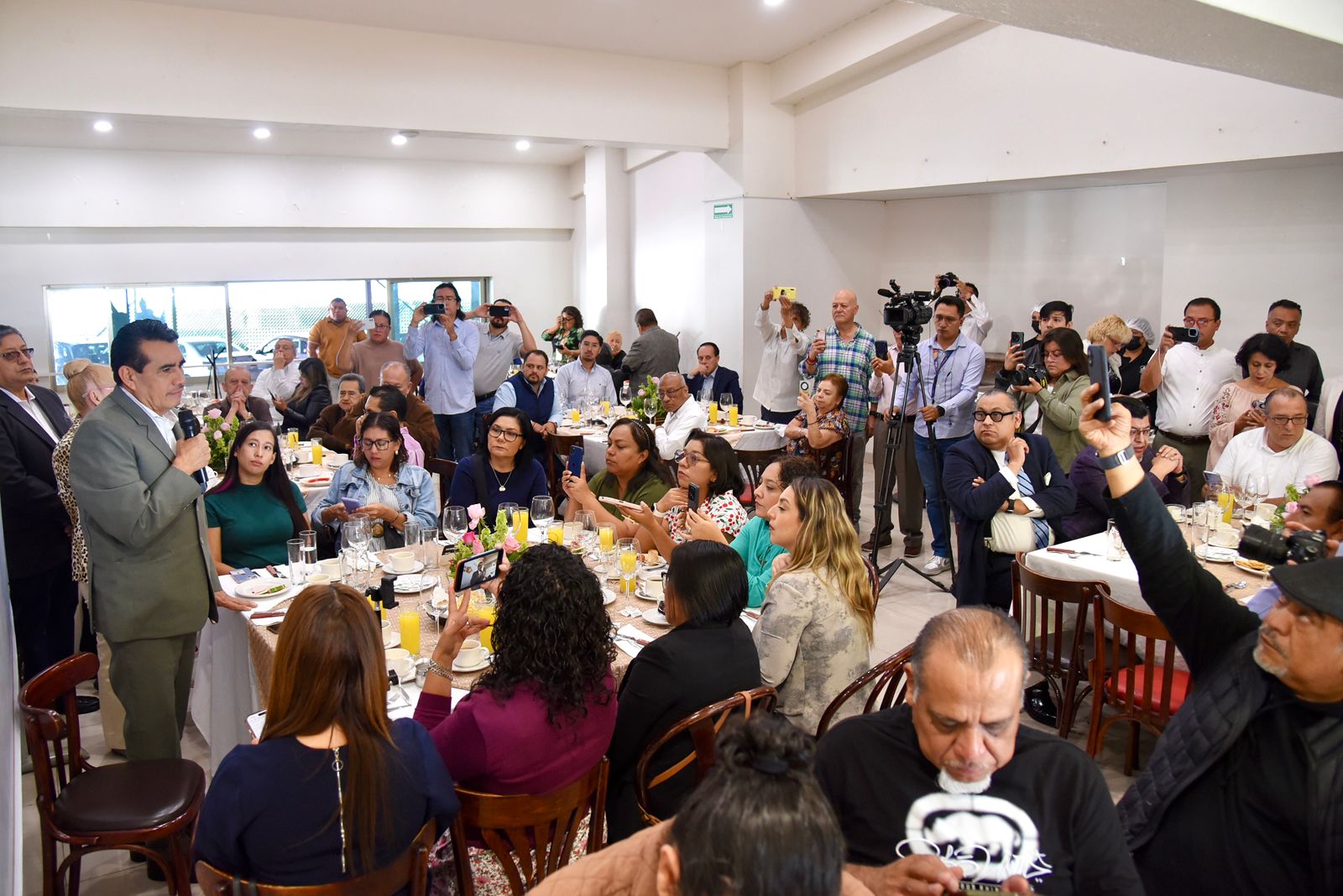 Ante la presencia de reporteros, fotógrafos, camarógrafos, columnistas y directores de medios, el diputado recalcó que a lo largo de sus más de 37 años de trayectoria política ha respetado y respetará las diversas posturas del periodismo crítico, “como las del estimado Mario Menéndez Rodríguez, de quien todavía conservo esas reliquias de publicaciones que fueron muy duras”.
