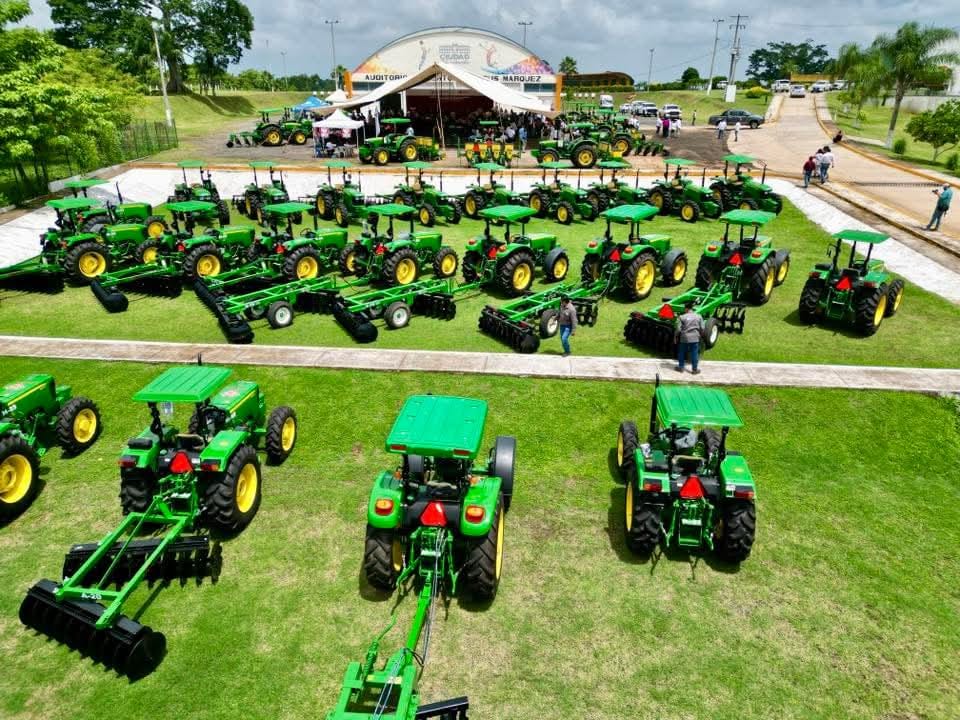 La Gobernadora explicó que trabaja en un modelo integral que incluye la mecanización de 30 mil hectáreas, asistencia técnica, fertilización y acompañamiento directo para lograr hasta 10 toneladas por hectárea. “Estos tractores son del pueblo, para el pueblo. Vamos a distribuirlos por zonas y dar seguimiento puntual para que lleguen a quienes más lo necesitan”, afirmó. El titular de Sedarpa dijo que como parte del compromiso asumido de otorgar un apoyo de mil pesos por cada tonelada adicional de maíz entregada a las Tiendas del Bienestar, para alcanzar un precio de garantía de 7 mil pesos para este cultivo, fueron dispersados ocho millones 659 mil pesos, en favor de 593 productores de 40 municipios. Señaló que se está invirtiendo cerca de 40 millones de pesos en esta etapa inicial del programa, lo que incluye, 50 tractores equipados, 50 motocultores, 18 rastras, 3 arados, 11 desvaradoras, dos trituradoras, ocho aspersoras, dos remolques y sembradoras y secadoras. La presidenta municipal de Acayucan, Rosalba Rodríguez Rodríguez, entregó formalmente un documento para la donación de un terreno municipal al Gobierno del Estado, lo que permitirá seguir desarrollando infraestructura agrícola en beneficio de la región. |
