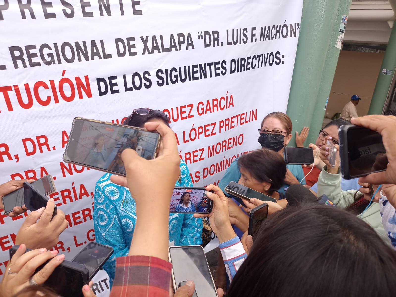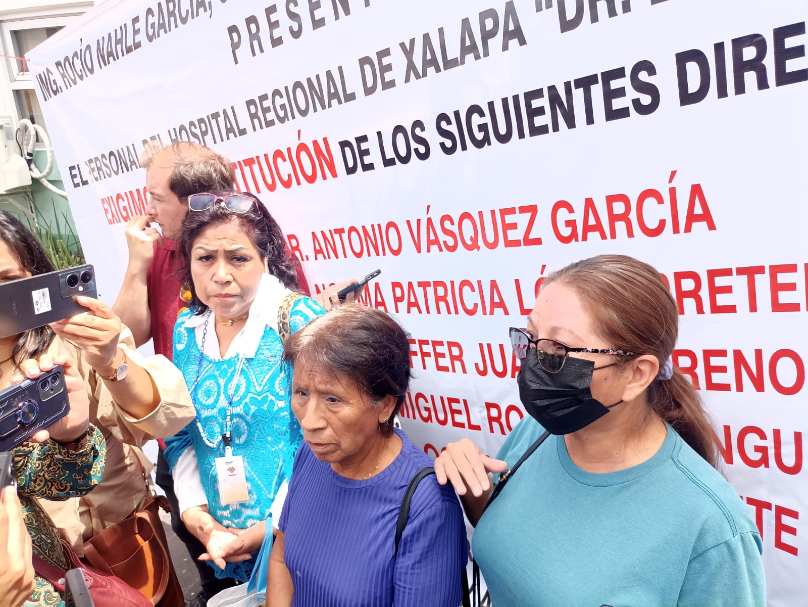 Irineo Pérez Melo.- Personal administrativo y de enfermería del Hospital Civil Luis F. Nachon de esta capital se manifestaron para exigir la destitución de directivos de este nosocomio por violar sus derechos laborales, acoso laboral y abuso de poder, entre otras irregularidades. En una gran bambalina que fue colocada frente al citado hospital, las inconformes demandaron la destitución de los doctores Antonio Vázquez García y Norma Patricia López Pretelin, director y subdirector, respectivamente, así como a la jefa y subjefe de Enfermeras, Jennifer Juárez Moreno y Miguel Rojas Domínguez, y al administrador, Octavio Bustamante.
