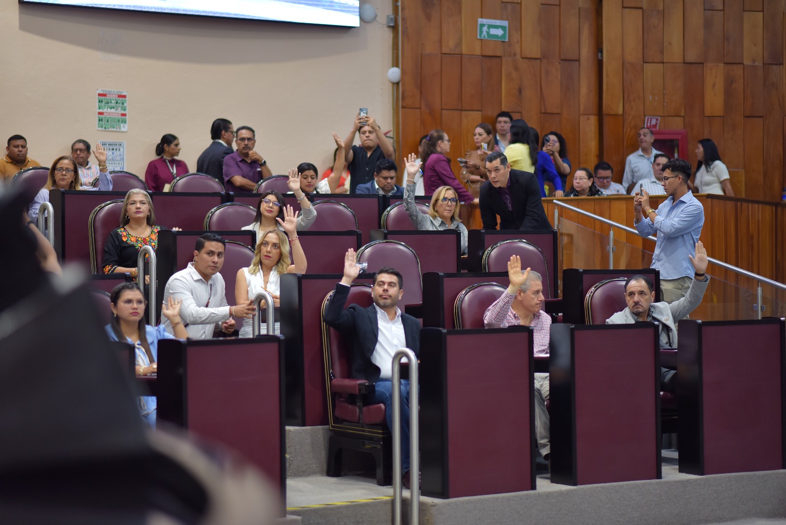 Xalapa, Ver., 25 de septiembre de 2025.- Las diputadas y los diputados de la LXVII Legislatura aprobaron las Minutas remitidas por las Cámaras de Diputados y de Senadores del Congreso de la Unión, relacionadas con reformas a diversos artículos de la Constitución Política de los Estados Unidos Mexicanos y que su contenido refiere a la ratificación de grados superiores de la Guardia Nacional y sobre la expedición de una Ley General en materia de extorsión. En la tercera sesión ordinaria, la presidenta de la Mesa Directiva, Naomi Edith Gómez Santos, instruyó la lectura de cada una de las Minutas y concedió el uso de la voz a las diputadas y los diputados para el debate, previo a la apertura del sistema electrónico para la votación.