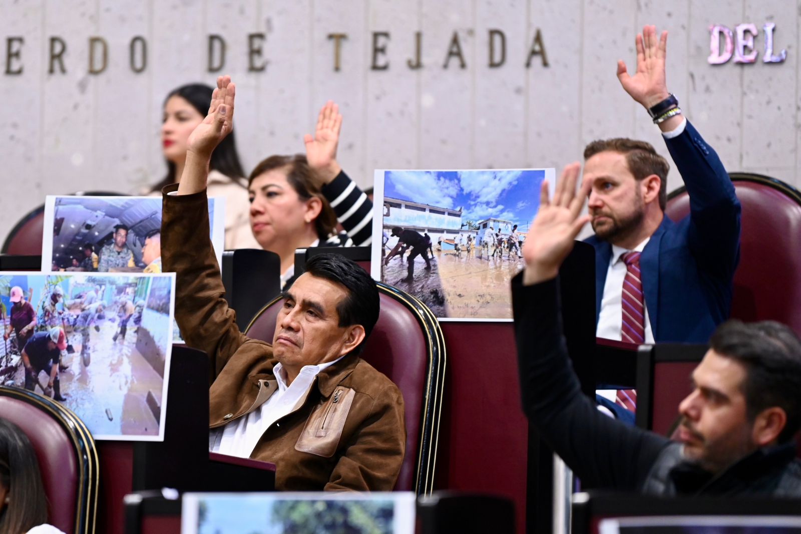 Posicionamientos Por el Grupo Legislativo de Morena, el diputado Antonio Ballesteros Grayeb dijo que la propuesta de la gobernadora constituye un avance en la prevención, atención y reducción de riesgos con una coordinación institucional más efectiva. La diputada Victoria Gutiérrez Pérez refirió el uso que se dio al extinto Fondo de Desastres Naturales (Fonden). El legislador Carlos Marcelo Ruiz Sánchez, en nombre del Grupo Legislativo del Partido Verde Ecologista de México (PVEM), destacó que con esta reforma la ayuda llegará aun más rápido y no estará sujeta a retrasos por trámites burocráticos. A su vez, la diputada Indira de Jesús Rosales San Román adelantó el voto del Grupo Legislativo del Partido Acción Nacional (PAN) a favor de la propuesta y se pronunció por una evaluación y un trabajo serio y comprometido. El legislador Héctor Yunes Landa, del Grupo Legislativo Veracruz Nos Une (VNU), presentó diversas propuestas para apoyar a los damnificados para su recuperación económica y laboral. Además, la diputada María Elena Córdova Molina manifestó que el partido Movimiento Ciudadano (MC) está "a favor de este dictamen porque significa la oportunidad de respaldar al pueblo que sufre hoy" y "de todo lo que esté por el bien de nuestro pueblo afectado". Por el Partido del Trabajo (PT), el legislador Ramón Díaz Ávila dijo que esta reforma consiste en actos jurídicos que permitirán al estado actuar ante los nuevos sucesos perturbadores de la naturaleza y al Ejecutivo dar respuesta inmediata.