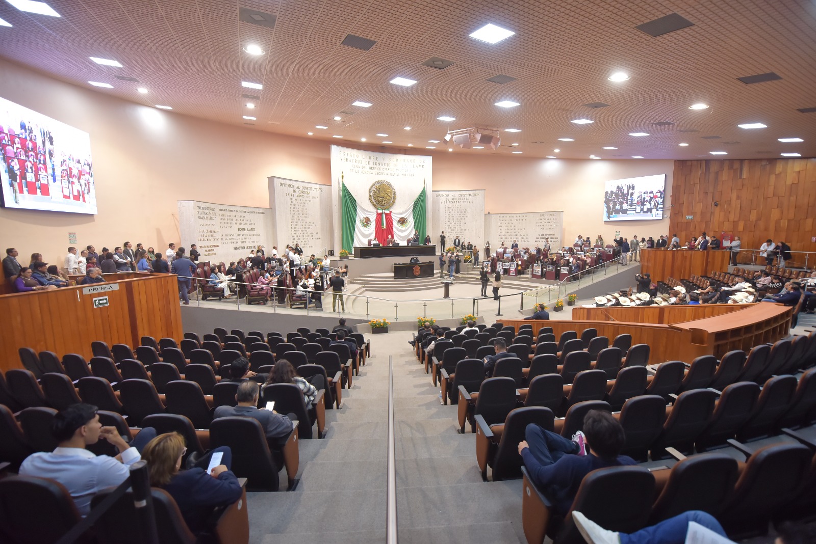 Xalapa, Ver., 15 de octubre de 2025.- Por unanimidad, el Pleno de la LXVII Legislatura de Veracruz aprobó la propuesta de la gobernadora del estado, Rocío Nahle García, de crear un Comité Estatal de Desastres que responda eficazmente ante los efectos adversos de fenómenos naturales, y de que el Ejecutivo de la entidad emita un Acuerdo para determinar una situación estatal de desastres u otros siniestros con el objeto de destinar recursos del instrumento financiero de atención a las contingencias. En la Sexta Sesión Ordinaria, la Mesa Directiva, presidida por la diputada Naomi Edith Gómez Santos, turnó a la Comisión Permanente de Protección Civil la Iniciativa con Proyecto de Decreto que reforma y adiciona diversas disposiciones de la Ley de Protección Civil y la Reducción del Riesgo de Desastres del estado, remitida a esta Soberanía por la titular del Poder Ejecutivo. Al tratarse de un asunto de máxima emergencia, durante la misma sesión, la Mesa Directiva decretó un receso a fin de que dicha comisión procediera a analizar y dictaminar la propuesta para que fuera discutida y votada por el Pleno, que le otorgó 44 votos a favor, sin votos en contra ni abstenciones. El proyecto considera "incuestionable la necesidad de dar mayor efectividad a la operatividad de los instrumentos financieros con los que cuenta el Gobierno del Estado para prevenir, preparar, auxiliar, recuperar y en su caso, reconstruir los efectos ocasionados en la eventualidad de una emergencia, desastres u otros siniestros, mediante el acceso pronto a recursos financieros para atacar los contratiempos que provocan pérdidas, daños materiales, decesos humanos y de animales, impidiendo su normal desarrollo y ejerciendo consecuencias negativas en la vida de los ciudadanos, especialmente de aquéllos en condiciones más vulnerables". Por lo anterior y “para lograr un eficaz ejercicio de seguridad y protección de las y los veracruzanos, es sumamente importante que el Estado y los municipios, concurran con acciones de previsión, prevención, mitigación, preparación, auxilio, recuperación y en su caso, reconstrucción para sobreponerse a la ocurrencia, tarde o temprano inevitable, de emergencias, desastres y otros siniestros”. En virtud de lo cual, añade, los instrumentos normativos que rigen la operatividad del gobierno “deben actualizarse y cumplir con objetivos planificados para que sean el reflejo del proceso de cambio y mejora de esta administración pública”. De acuerdo con la gobernadora, las modificaciones o cambios que propuso a la referida ley permitirán su adaptación a las nuevas circunstancias, a las necesidades o para mejorar los resultados de su aplicación. Particularmente, explica que la creación del Comité Estatal de Desastres tiene la finalidad de ser un órgano técnico facultado que identifique, evalúe y dé seguimiento a las zonas afectadas por un fenómeno perturbador. Asimismo, el Acuerdo que Determina una Situación Estatal de Desastres u Otros Siniestros plantea fortalecer la identificación de afectaciones de la infraestructura pública en el Estado, derivados de un fenómeno perturbador, a través del Comité Estatal de Desastres.