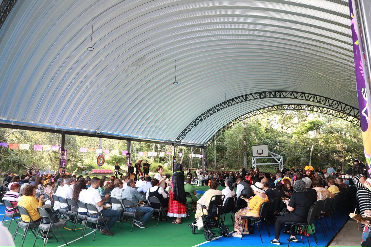Xalapa, Ver., martes 28 de octubre de 2025.- En el marco del cuarto Festival de Día de Muertos de la Estancia Garnica, el Instituto de Pensiones del Estado (IPE) inauguró el techado de la cancha principal, espacio destinado a talleres, actividades recreativas y deportivas para las y los pensionados veracruzanos.