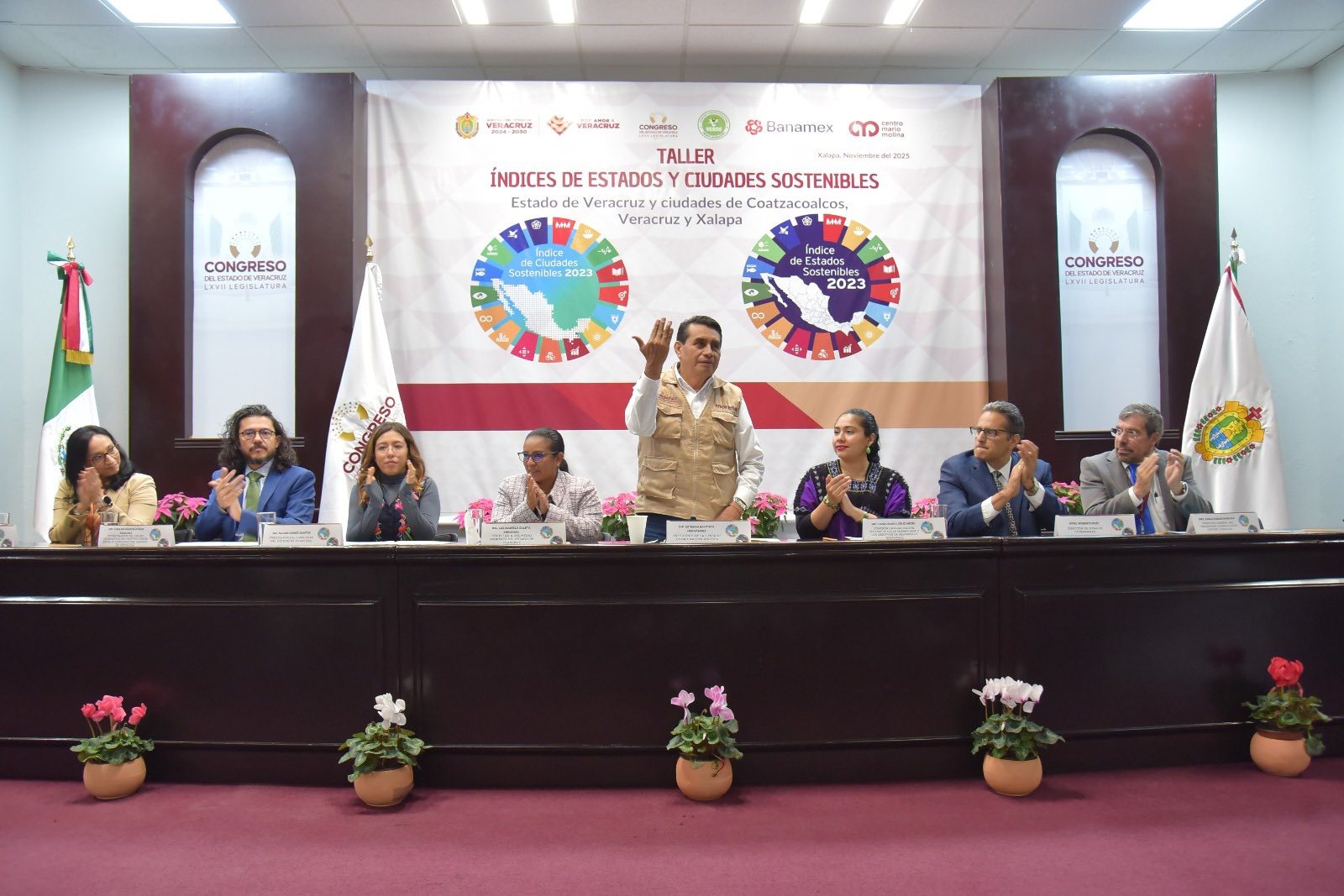 Xalapa, Ver., 12 de noviembre de 2025.- El Congreso de Veracruz contribuye al fortalecimiento del cuidado del medio ambiente, a la reducción de la desigualdad y al mejoramiento del desarrollo urbano y de las condiciones de vida de los más de ocho millones de habitantes del estado, afirmó la presidenta de la Mesa Directiva de la LXVII Legislatura, Naomi Edith Gómez Santos, al inaugurar el taller Índices de Estados y Ciudades Sostenibles, organizado por el Grupo Legislativo del Partido Verde Ecologista de México (PVEM), en colaboración con el Instituto Mexicano para la Competitividad, A. C. (IMCO), la Fundación NovaGob y el Centro Mario Molina. En el auditorio Sebastián Lerdo de Tejeda del Palacio Legislativo, la legisladora manifestó que el papel de esta representación popular es generar leyes que propicien que las ciudades veracruzanas sean lo más ecológicamente sostenibles posible y a la vez resilentes ante los cambios impredecibles de la naturaleza. Ante lo cual, afirmó que "estos esfuerzos no son aislados. El Estado mexicano ha adoptado la responsabilidad de cumplir con lo establecido en los Objetivos de Desarrollo Sostenible (ODS) en los que ciudades y comunidades sostenibles, de conformidad con el Objetivo 11, resultan un pilar fundamental en el cumplimiento de todas las metas".