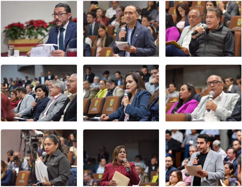 En su exposición, el secretario de Gobierno destacó los logros del primer año en cuatro bloques: Atención y Participación Ciudadana, Promoción y Protección de los Derechos Humanos, Trámites y Servicios e Institucionalidad del Estado de Derecho. Dio cuenta de la realización de casi cuatro mil gestiones a ciudadanos en diversos rubros y las acciones llevadas a cabo por la Subsecretaría de Gobierno, Dirección de Gobernación, Dirección de Política Regional, Coordinación Estatal de Juntas de Mejoras y la Coordinación de Promoción de Valores Cívicos y Culturales. A través de la Dirección de la Cultura de la Paz, la capacitación en derechos humanos, de género, inclusión, diversidad cultural y discapacidad dirigida a servidoras y servidores públicos e instituciones educativas; la gestión y entrega de más de 900 becas a estudiantes en beneficio de familiares de personas desaparecidas y víctimas de feminicidio. Habló también de la atención a periodistas y familiares amenazados o privados de la vida, del Plan de Atención a Migrantes en Situación de Retorno “Veracruz te abraza”, de los encuentros con colectivos representantes de familias de personas desaparecidas y no localizadas y, por primera vez, la atención directa de la gobernadora Rocío Nahle García a colectivos de todo el estado y las más de 58 mil acciones de este gobierno a través de la Comisión Ejecutiva Estatal de Atención Integral a Víctimas.