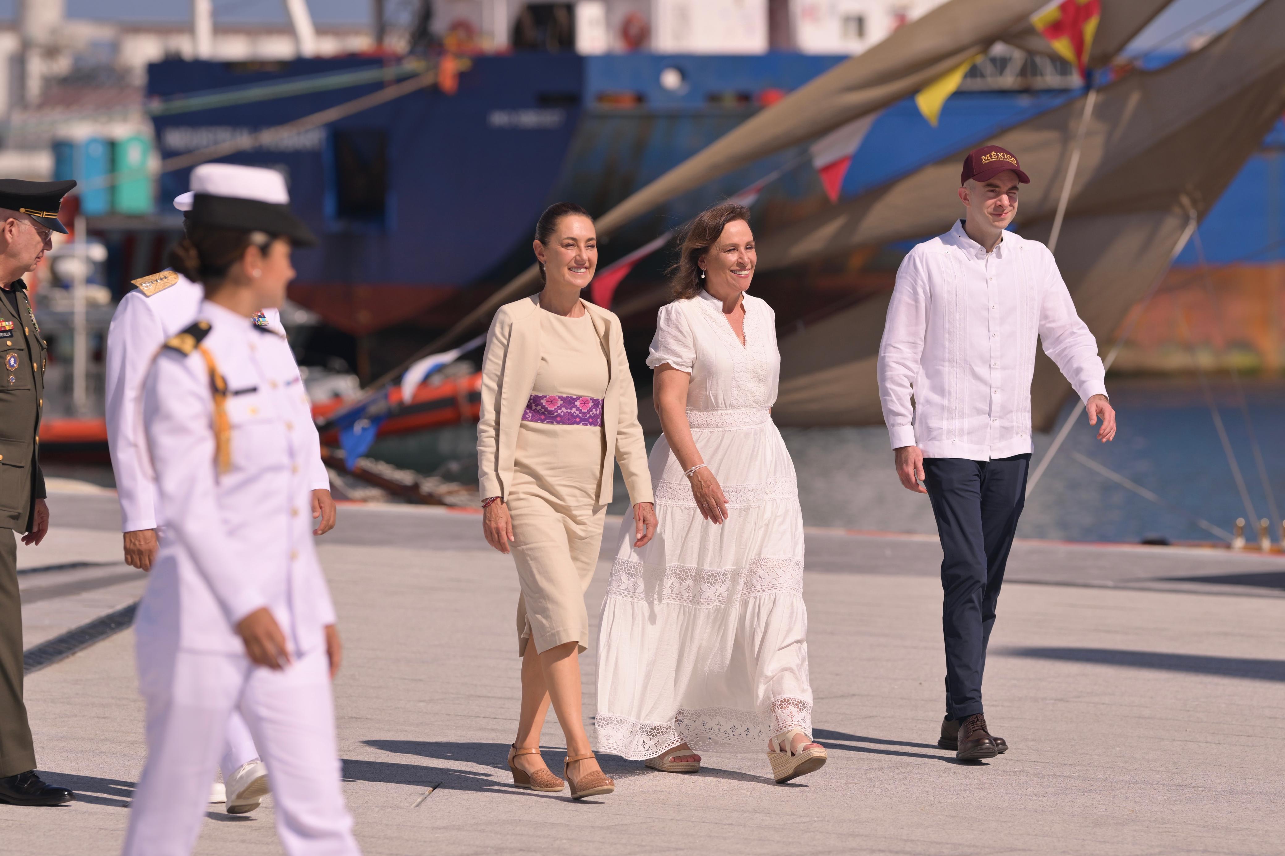 Veracruz, Ver., domingo 23 de noviembre de 2025.- En el marco del Bicentenario de la Consolidación de la Independencia en la Mar, la gobernadora Rocío Nahle García y la presidenta Claudia Sheinbaum Pardo, encabezaron la visita oficial al Buque Escuela ARM Cuauhtémoc, en un acto solemne para reconocer el valor y la unidad de la comunidad naval.