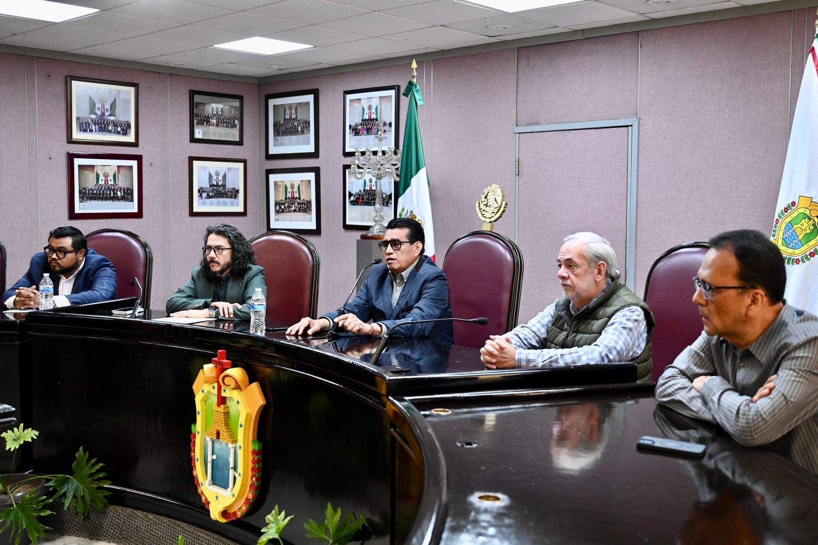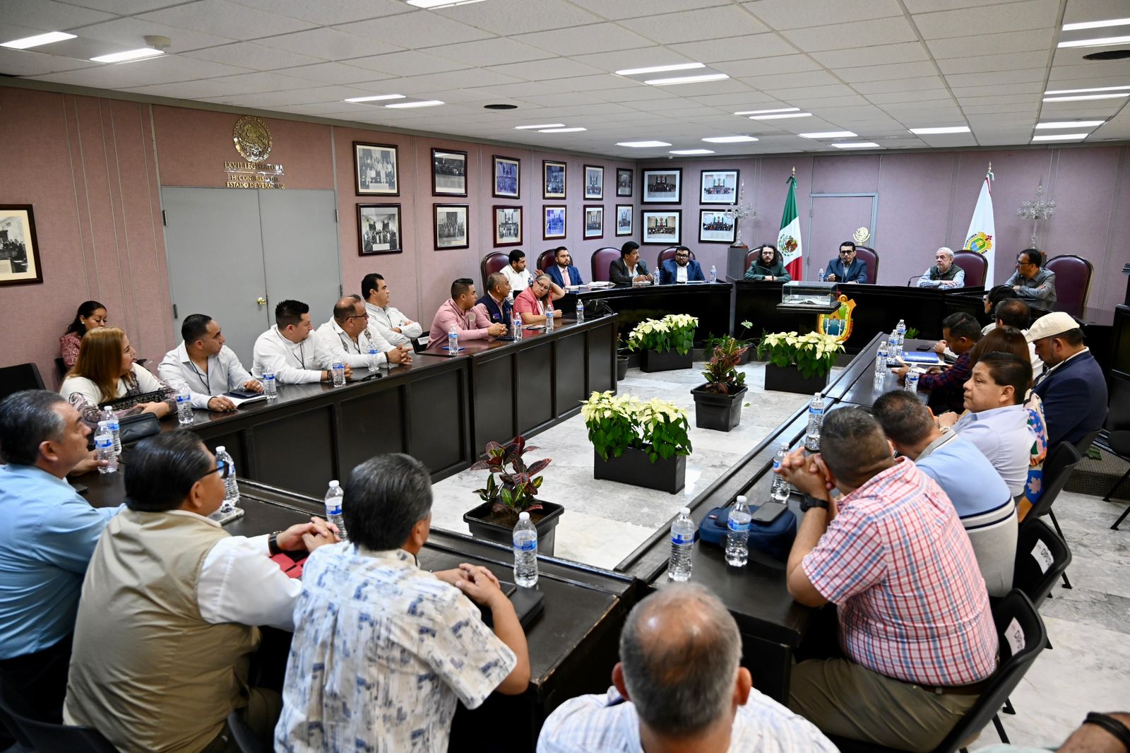 Xalapa, Ver., 24 de noviembre de 2025.- El diputado presidente de la Junta de Coordinación Política (Jucopo) de la LXVII Legislatura, Esteban Bautista Hernández, recibió a más de 20 líderes del gremio sindical del Poder Ejecutivo y organismos autónomos, quienes reconocieron su voluntad e intervención para llevar a buen término las negociaciones para frenar la iniciativa a la Ley Estatal del Servicio Civil, en materia laboral. Durante el encuentro, acompañado del diputado Carlos Marcelo Ruiz Sánchez, el legislador Bautista Hernández refrendó el compromiso del Congreso estatal con la clase trabajadora, "sus demandas fueron revisadas y atendidas, su lucha y reclamos son válidos y tienen nuestro respaldo: la libertad sindical está garantizada", afirmó.