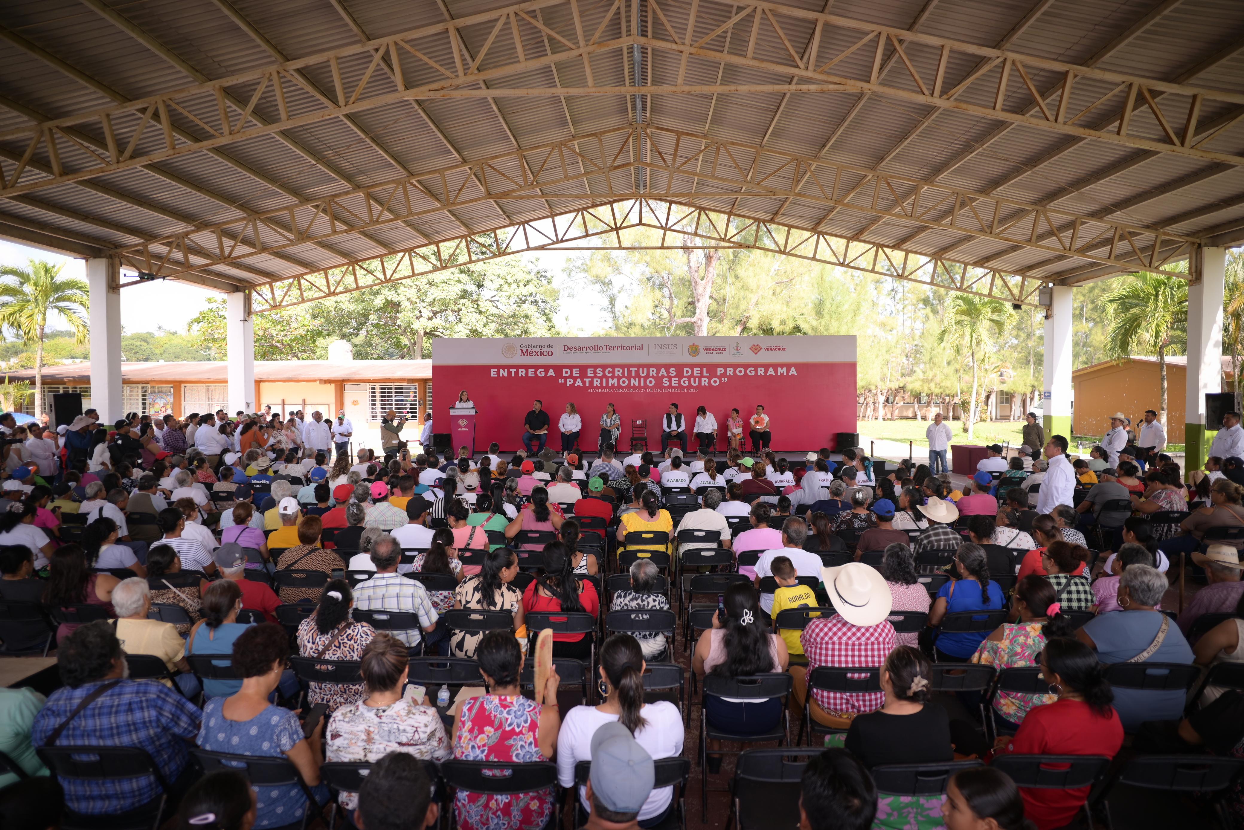 Alvarado, Ver., sábado 27 de diciembre de 2025.– “No es un tema menor entregar una propiedad legalmente; es hacer justicia social y dar tranquilidad a las familias”, afirmó la gobernadora Rocío Nahle García al encabezar en Alvarado la entrega de 336 escrituras del programa Patrimonio Seguro, en coordinación con el Instituto Nacional del Suelo Sustentable (INSUS).