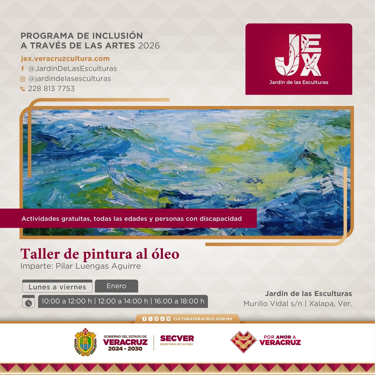 Xalapa, Ver., jueves 08 de enero de 2026.- La Secretaría de Cultura de Veracruz (SECVER) invita a participar en los talleres inclusivos del Programa de Inclusión a través de las Artes (PIAA), que se desarrollarán durante el mes de enero en el Jardín de las Esculturas de Xalapa (JEX) y el Ágora de la Ciudad. Todas las actividades son gratuitas.