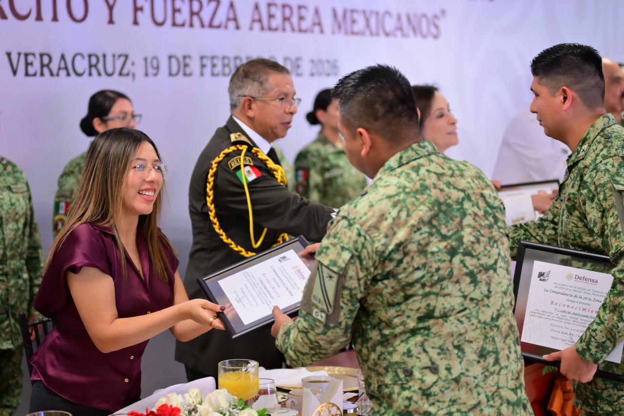 En el acto realizado en la 26ª Zona Militar, ubicada en la localidad de El Lencero, municipio de Emiliano Zapata, las y los presentes rindieron homenaje póstumo a un integrante de la institución y destacaron la labor del personal femenino del Hospital Militar de Zona y de elementos que dieron muestra de lealtad y patriotismo en la aplicación del Plan DN-III-E en Veracruz.