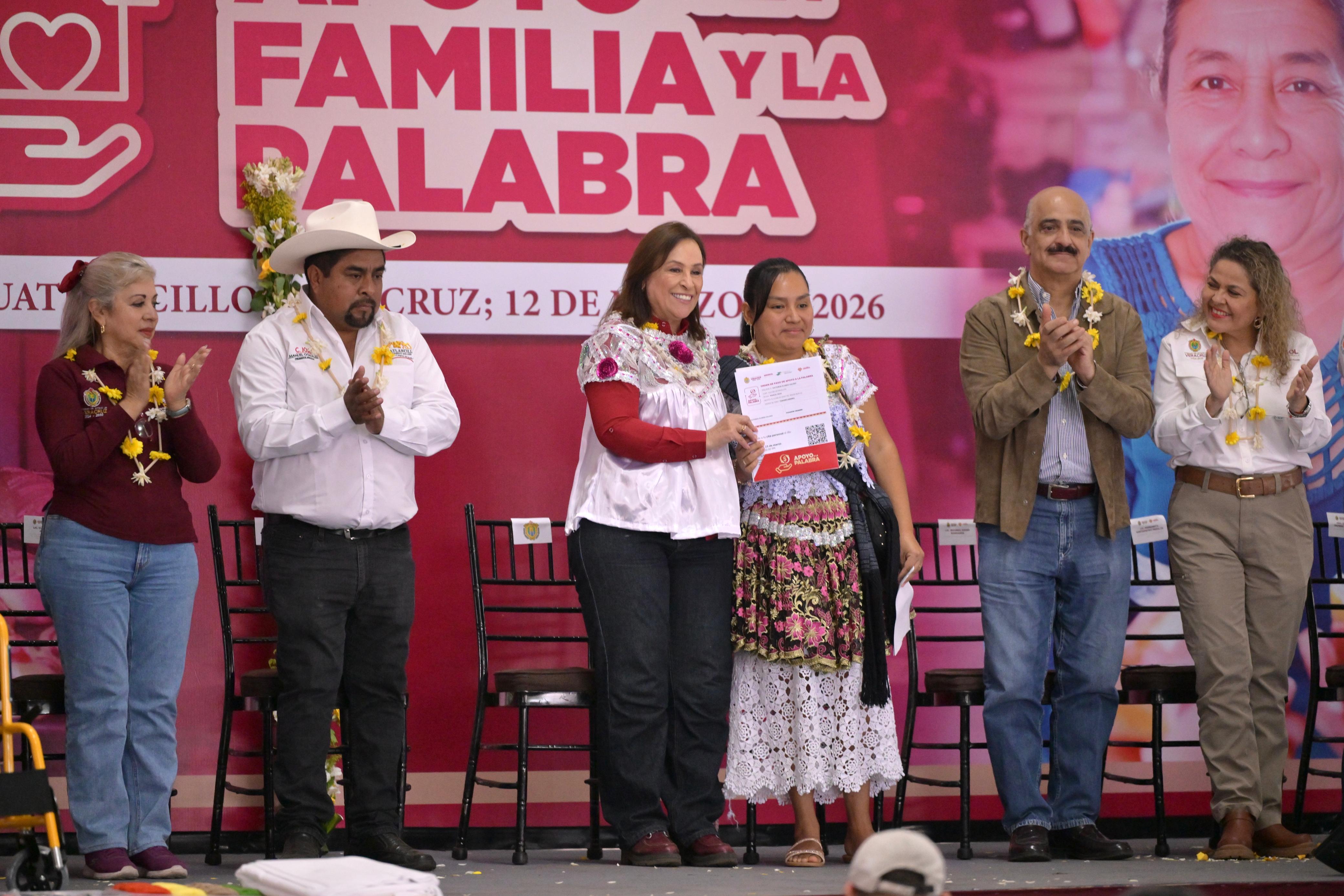 Ixhuatlancillo, Ver., jueves 12 de marzo de 2026.- “Esto representa mucho más que un material; representa tranquilidad para nuestras familias. Gracias por mirar hacia nuestras comunidades y por demostrar con hechos que no estamos solos”, expresó Victoria Flores Valdez al recibir de manos de la gobernadora Rocío Nahle García la orden de pago con la que impulsará su negocio de elaboración de vestidos tradicionales. En esta región de las Altas Montañas, con importante población indígena, la Gobernadora encabezó la entrega de mil 30 órdenes de pago del programa Apoyo a la Palabra, de la Secretaría de Desarrollo Social, así como 16 mil 184 enseres y talleres del programa Apoyo a la Familia, del Sistema para el Desarrollo Integral de la Familia del Estado de Veracruz, en beneficio de habitantes de Ixhuatlancillo, Ixtaczoquitlán, Mariano Escobedo, Nogales, Orizaba, Río Blanco, Camerino Z. Mendoza, Huiloapan y La Perla. Destacó que ocho de cada diez beneficiarios son mujeres y que este año el recurso para emprendedores cuenta con una inversión estatal de 200 millones de pesos, el doble que en 2025, con el objetivo de ampliar su alcance en más municipios.