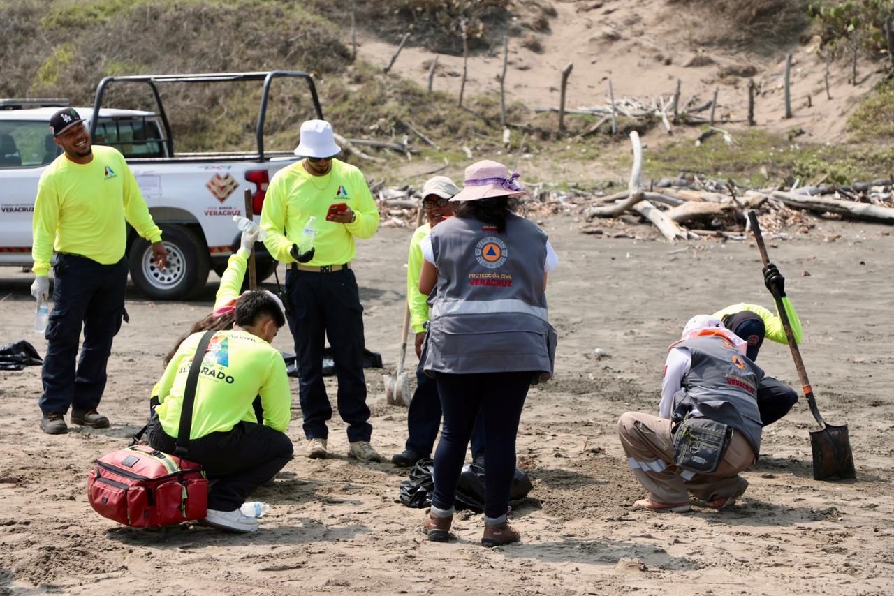 Alvarado, Ver., martes 31 de marzo de 2026.- Brigadas del Plan Local de Contingencia, en coordinación con el Grupo Interinstitucional del Gobierno de México, realizaron labores de limpieza en un tramo aproximado de 3.5 kilómetros en las playas La Trocha y La Cava, en atención a la presencia de residuos en esta franja del litoral veracruzano.