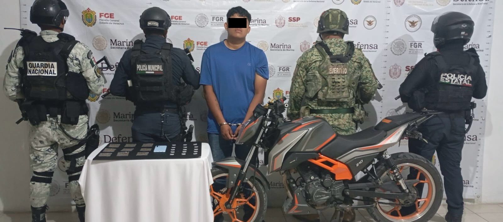 Asimismo, en apoyo a la Fiscalía General del Estado, 28 personas fueron detenidas durante cateos en municipios como Tihuatlán, Tuxpan, Álamo, Espinal, Papantla, Martínez de la Torre, Chicontepec, Zongolica, Misantla, Cotaxtla, Huatusco, Orizaba, Actopan, Puente Nacional, Xalapa, Veracruz, Boca del Río, Tierra Blanca, Catemaco, Cosoleacaque y Coatzacoalcos.
