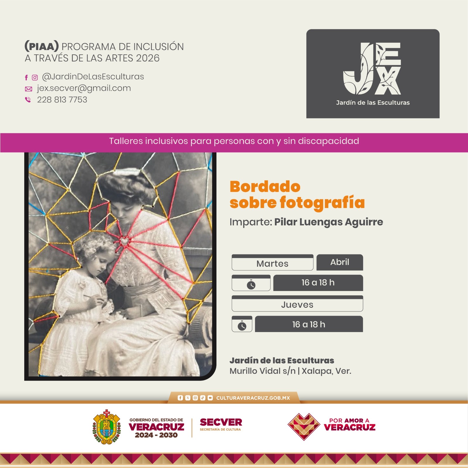 Asimismo, se impartirá el taller Estampas con semillas, en el que las y los participantes elaborarán composiciones plásticas a partir de diversos tipos de semillas. Las sesiones se realizarán todos los miércoles y viernes del mes, de 16:00 a 18:00 horas. El taller Bordado sobre fotografía se realizará todos los jueves, en horario de 16:00 a 18:00 horas. Esta actividad propone intervenir imágenes significativas mediante bordado a mano, con el fin de resignificar recuerdos. Finalmente, el taller Africanas de papel se desarrollará todos los jueves de abril, en horarios de 10:00 a 12:00, 12:00 a 14:00 y 16:00 a 18:00 horas. Las personas interesadas pueden inscribirse y solicitar la lista de materiales al teléfono 228 813 7753 o al correo electrónico piaa.secver@gmail.com. Conoce más información sobre esta y otras actividades del PIAA a través de las redes sociales @InclusionSECVER. Sigue la cuenta oficial de la @SECVERoficial para conocer todas las actividades que confirman por qué Veracruz está de moda. |