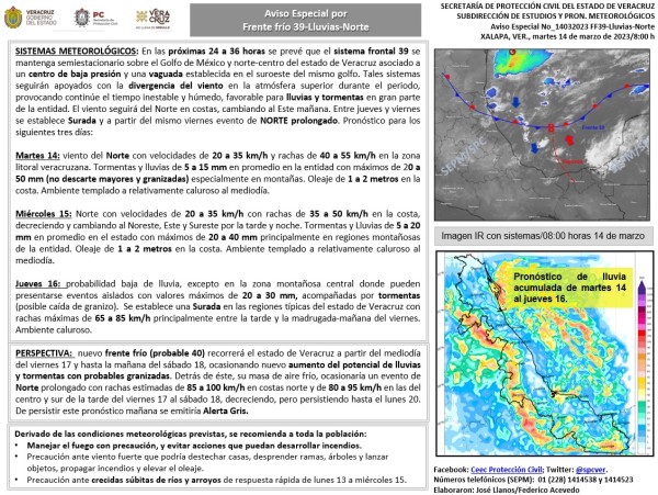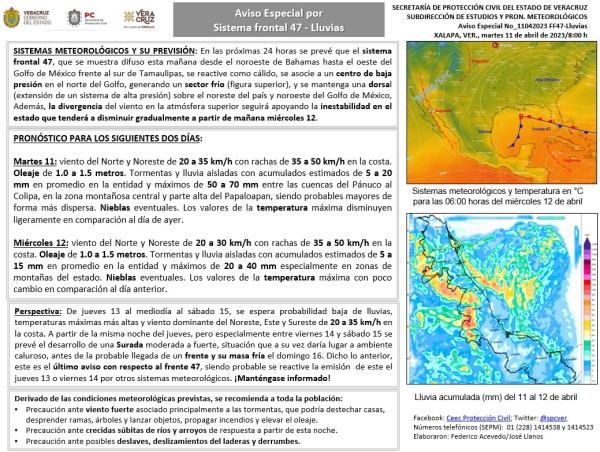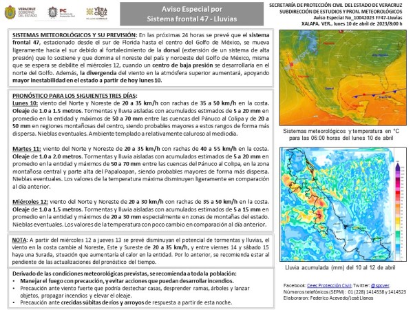 Población Veracruzana: Aviso Especial por Frente frío-Lluvias-Norte