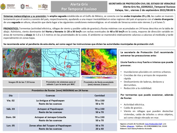 Población veracruzana: Alerta Gris por temporal lluvioso