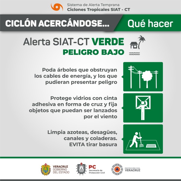 Población veracruzana: Alerta SIAT-CT-Verde-peligro bajo para la entidad