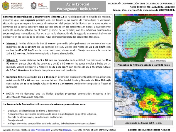 Población veracruzana: Aviso Especial por vaguada-Lluvia-Norte