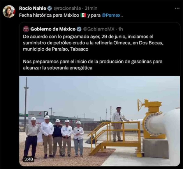 Confirma Rocío Nahle inicio de la carga de crudo para la refinación en Dos Bocas