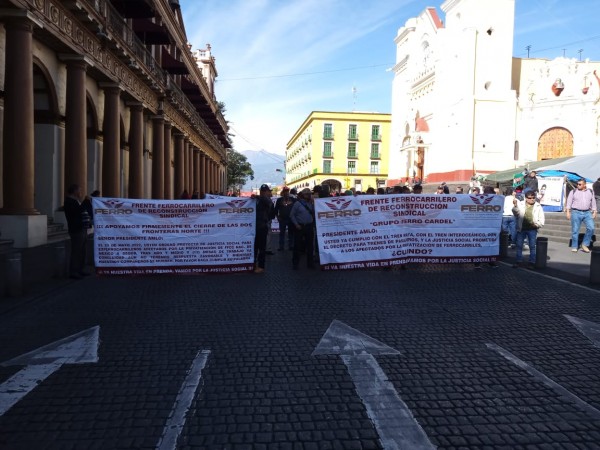 Exferrocarrileros bloquean el centro de Xalapa, exigen a AMLO cumpla con la justicia social prometida