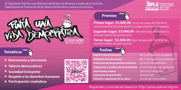 Artistas visuales: el OPLE Veracruz los invita a participar en el Concurso de Arte Urbano 'Pinta una vida democrática'