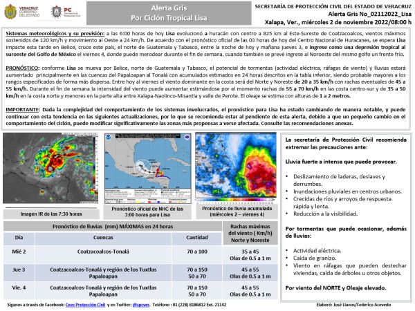 Población veracruzana: #AlertaGris por huracán Lisa