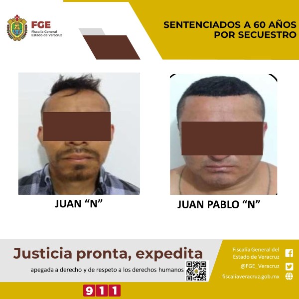 Juan ‘N’ y Juan Pablo ‘N’ sentenciados a 60 años de prisión por secuestro