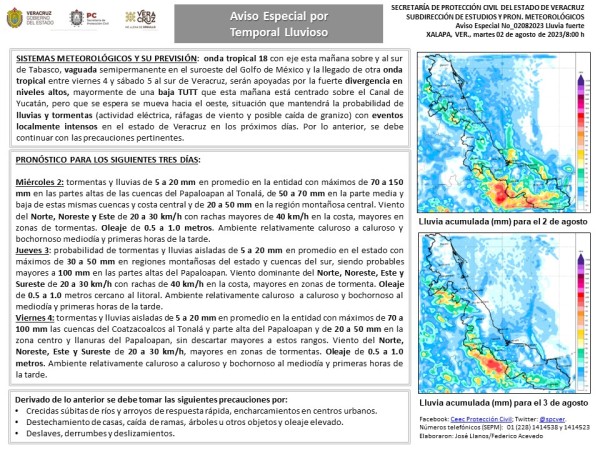 Población Veracruzana: #AvisoEspecial por Temporal lluvioso