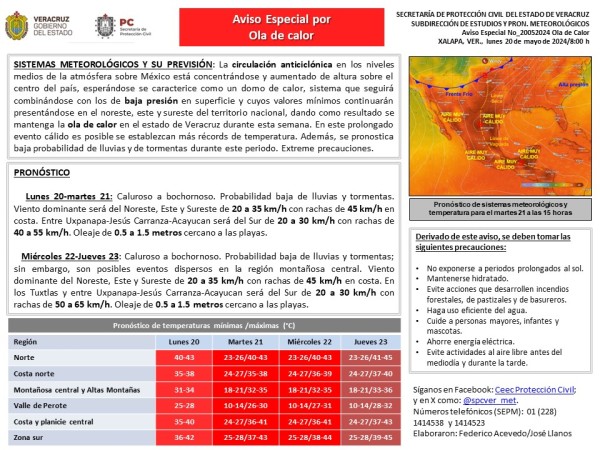 Población veracruzana: #AvisoEspecial por ola de calor