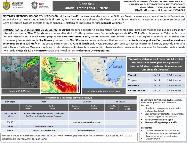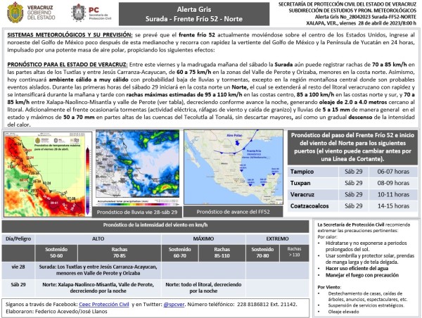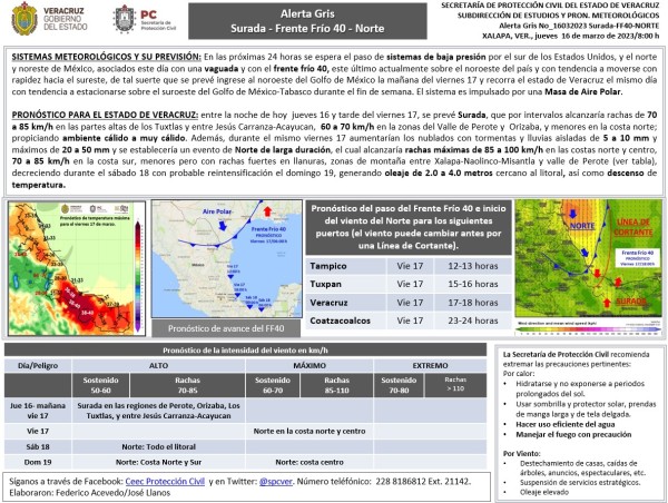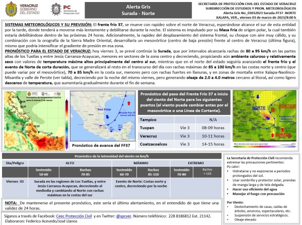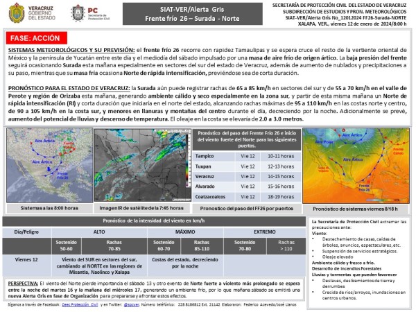 Población veracruzana: Alerta Gris por Surada-Norte