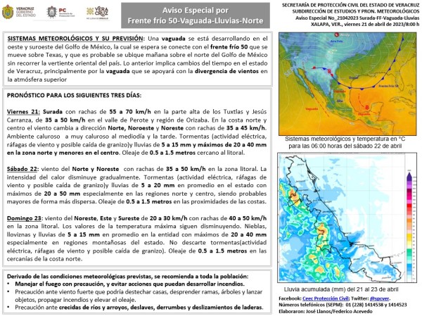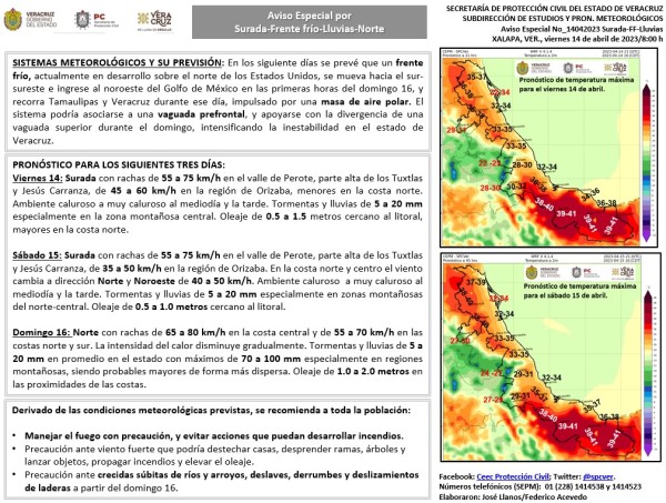 Población Veracruzana: Aviso Especial por Surada-Frente frío-Lluvias-Norte