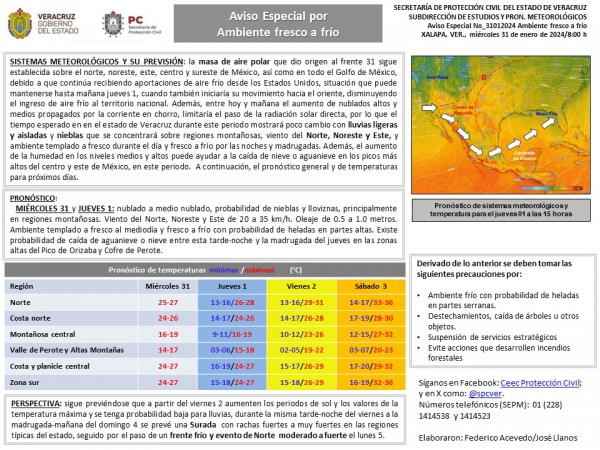 Población veracruzana: #AvisoEspecial por Ambiente fresco a frío