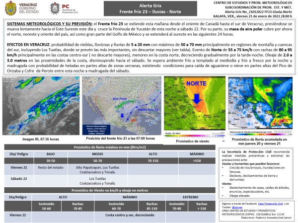Población veracruzana: se emite Alerta Gris por Frente frío-Lluvias-Norte