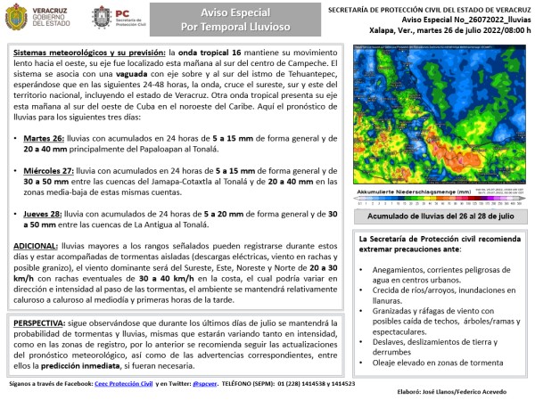 Población veracruzana: Aviso Especial por temporal lluvioso