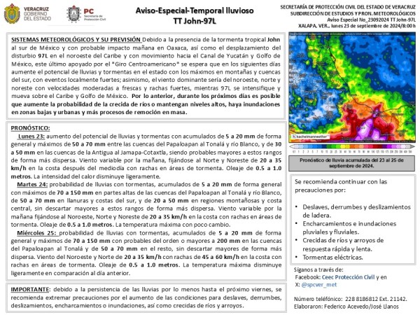 Población veracruzana: #AvisoEspecial por temporal lluvioso