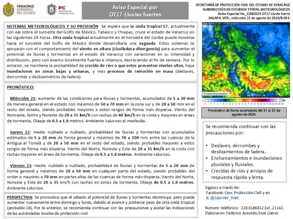 #AvisoEspecial por onda tropical-Lluvia fuerte