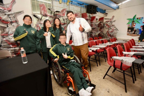 Zenyazen Escobar García cumple con alumnos de Xalapa y entrega mobiliario