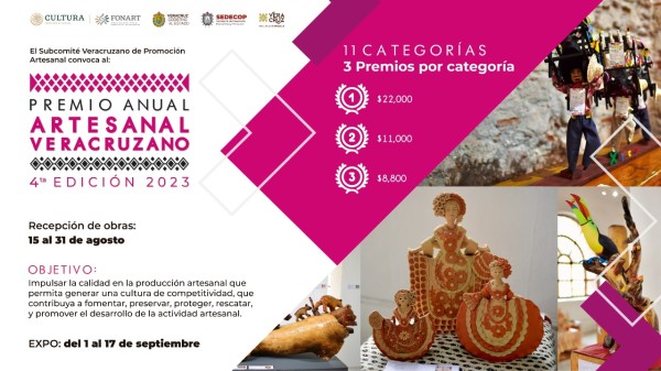 Del 08 al 18 de agosto, recepción de obras para el Premio Anual Artesanal Veracruzano 2023