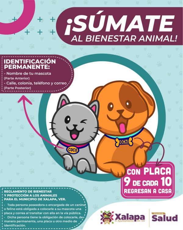 Reitera Ayuntamiento de Xalapa obligatoriedad en el uso de placa de identificación para mascotas
