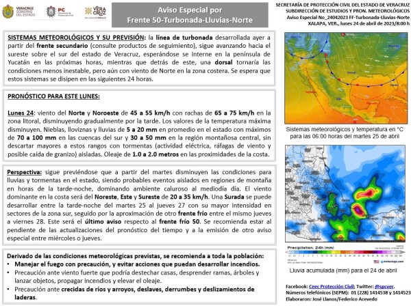 Población veracruzana: Aviso especial por Frente - Turbonada - lluvia - Norte