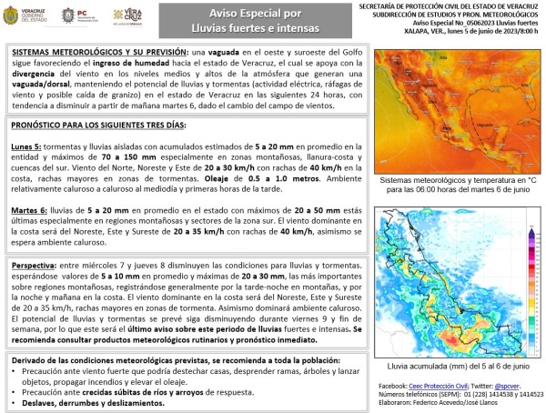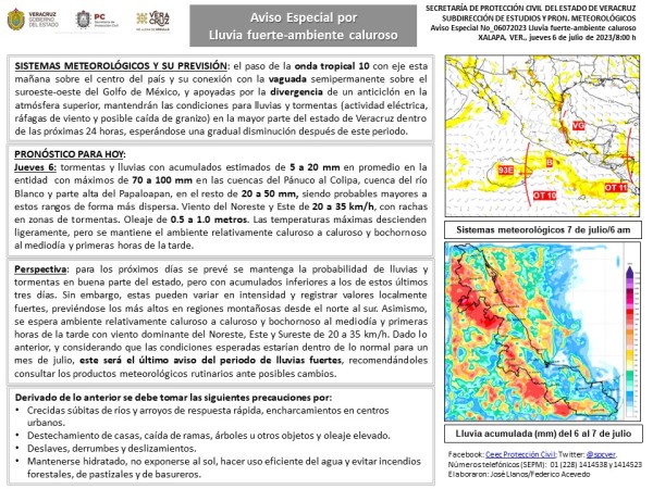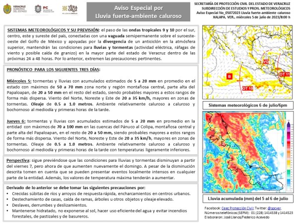 Población veracruzana: #AvisoEspecial por lluvia fuerte-ambiente caluroso