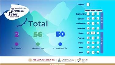 Se prevén 56 frentes fríos en la temporada 2023-2024