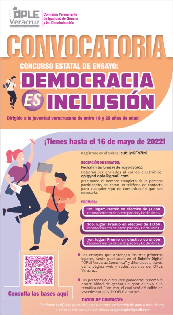 OPLE Veracruz invita a participar en el Concurso Estatal de Ensayo 'Democracia es Inclusión'