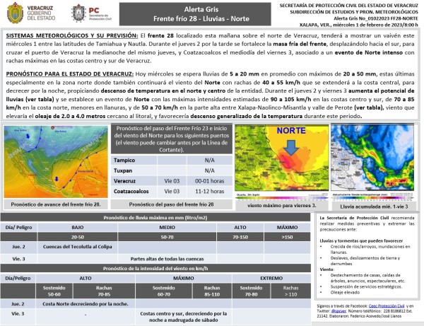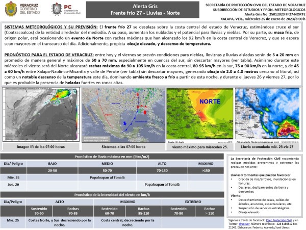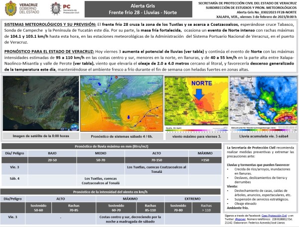 Población veracruzana: #AlertaGris por Frente frío-Norte