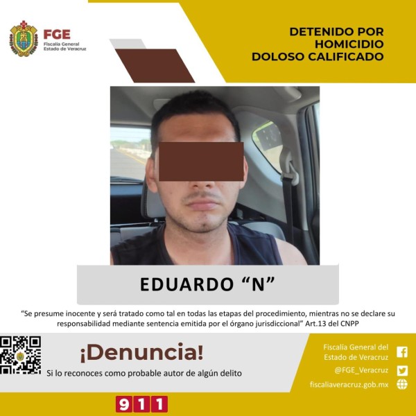 Detiene la Fiscalía al presunto asesino de las periodistas Yessenia Mollinedo y Sheila Johana ocurrido en Cosoleacaque, Veracruz.