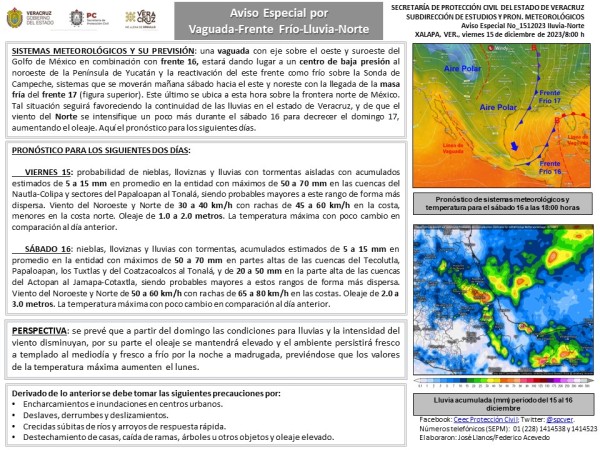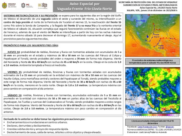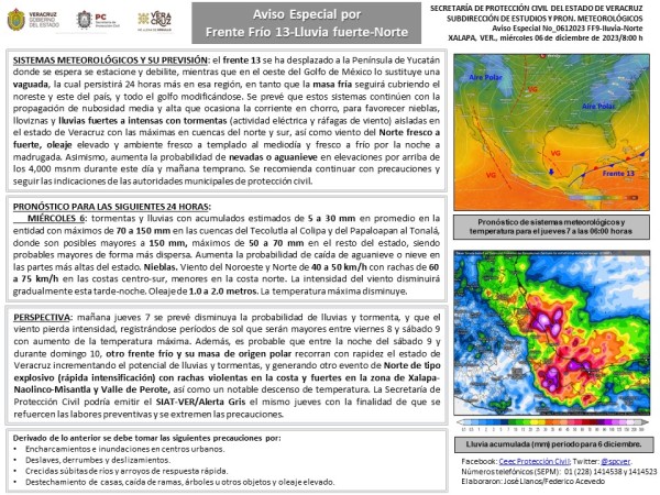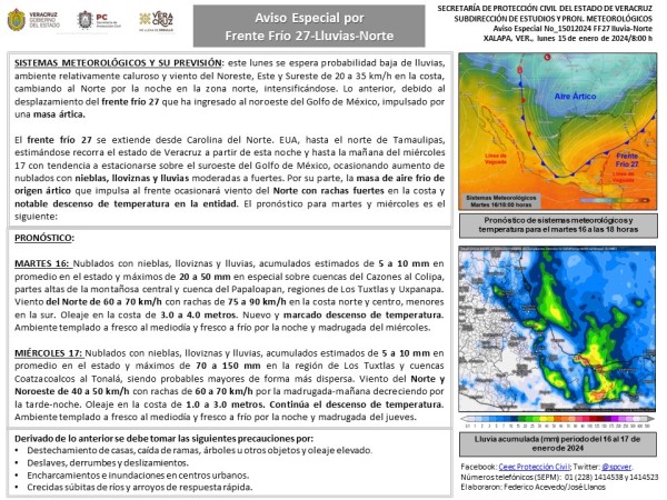 Aviso Especial de la Comisión Nacional del Agua y Protección Civil de Veracruz: ¡Aguas con el Frente Frío No. 27