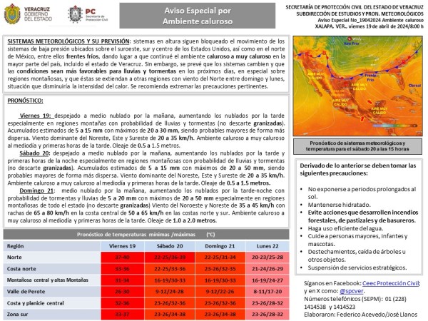 Población veracruzana: #AvisoEspecial por Surada-Ambiente caluroso