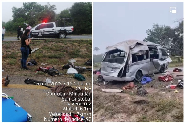 Fallecen 3 cubanos y 16 quedaron lesionados en accidente en autopista cerca de Cosamaloapan.
