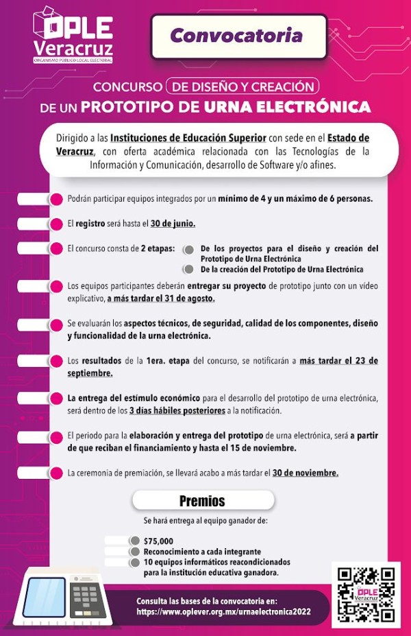 OPLE Veracruz convoca a Instituciones de Educación Superior a participar en el Concurso de diseño y creación de un prototipo de urna electrónica